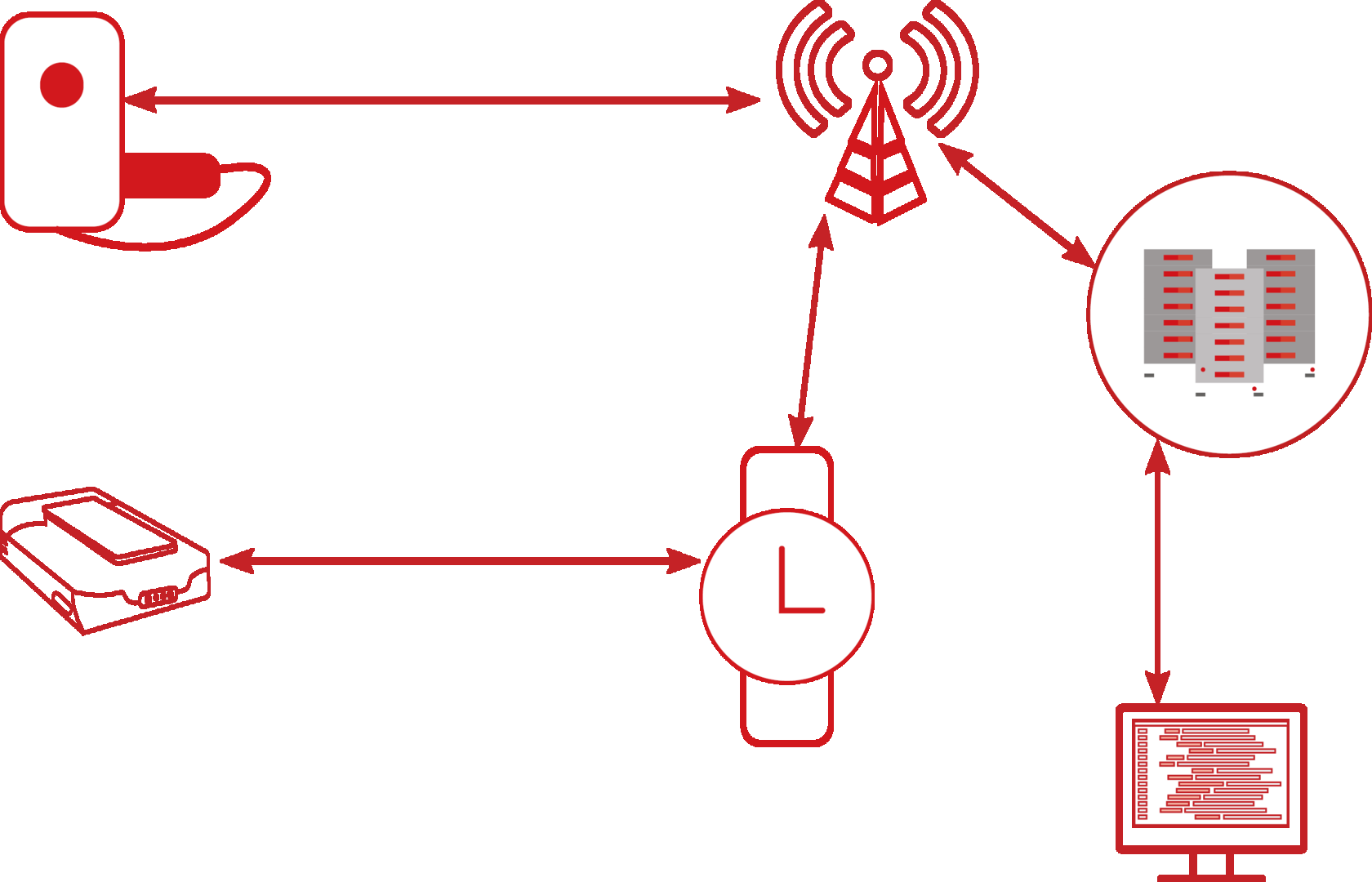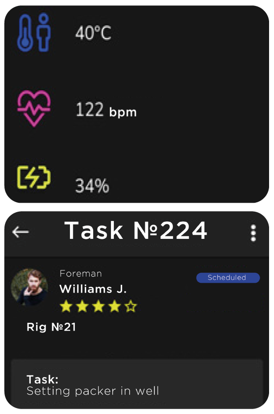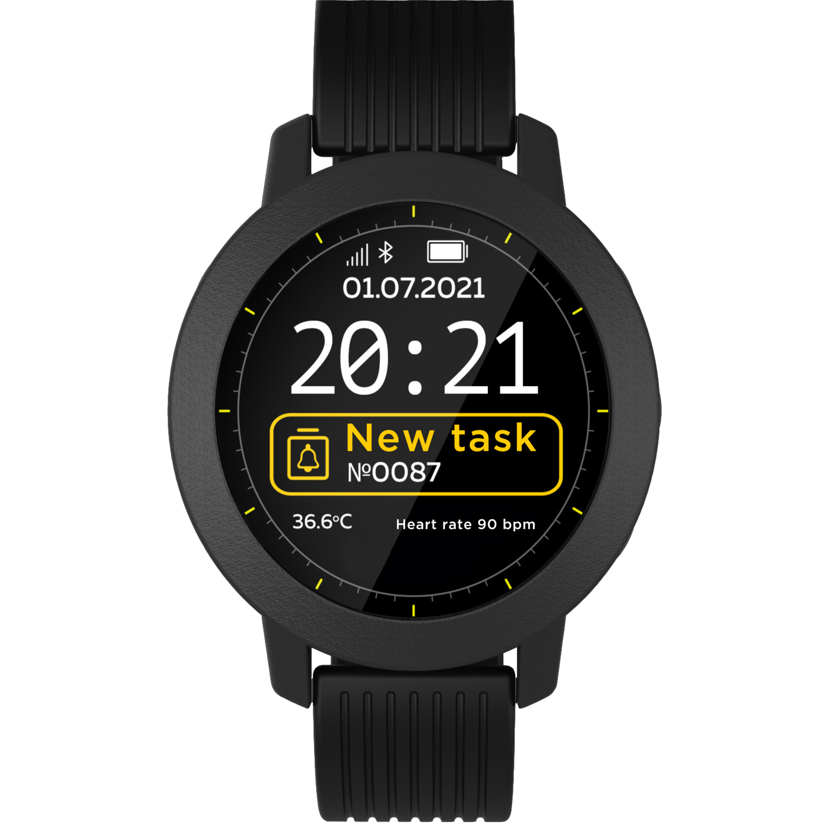 Оператор формирует для сотрудников задачи, которые автоматически оправляются на часы. Сотрудники отмечают на часах текущий статус выполнения заданий.