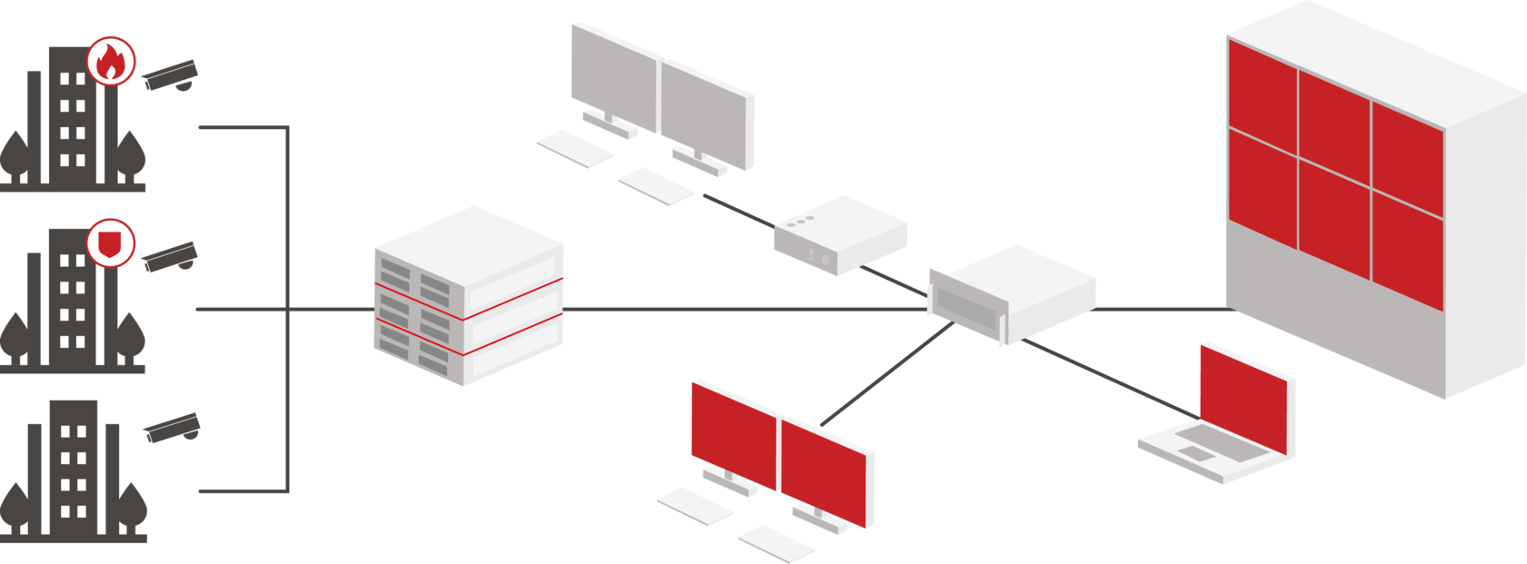• Развитый комплекс видеоаналитических модулей, интеграционных механизмов, средств автоматизации, интерфейсных объектов, сервисных подсистем, обеспечивающих реализацию согласовано функционирующей среды безопасности любого уровня сложности;